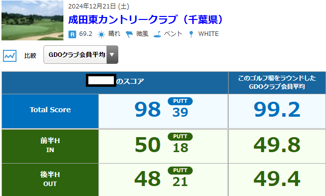 GDOクラブ会員平均スコアは99.2だから難易度はそこまで高くない…